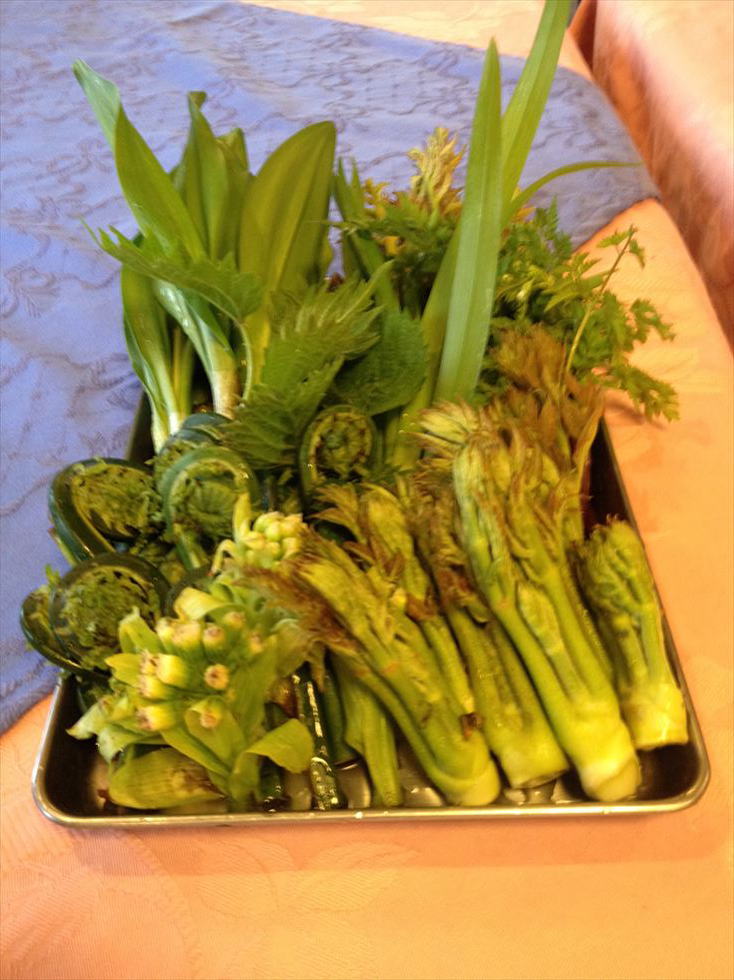 お食事も季節ごとに旬の物で手作りで洋食、和食、郷土料理、季節料理(山菜、イワナ,きのこ)スローフードで健康的に!勿論農薬の心配もなく山の恵みに毎年感謝しています。春は、こごみ、タラの芽、ミヤマイラクサ、コシアブラ、わらび、山ウド、…天ぷら、お浸しは勿論、昔から地元で食べられてきた料理法でお作りいたします。春一番の自然のエネルギーで元気いっぱいで秋の味覚はきのこ鍋が好評です。歯ごたえや味が栽培物とはちょっと違いますね。