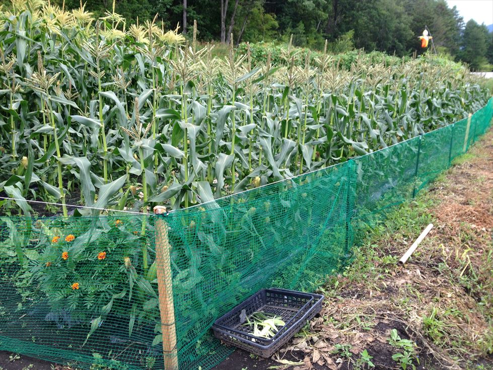 今年も野菜を畑で作りズッキーニ、きゃべつ、レタス、ねぎ、ジャガイモ、とうもろこし、トマト、大根が出来ます。柔らかく甘く美味しいです。朝晩の寒暖の差が良いようで採りたての物をお出ししています。